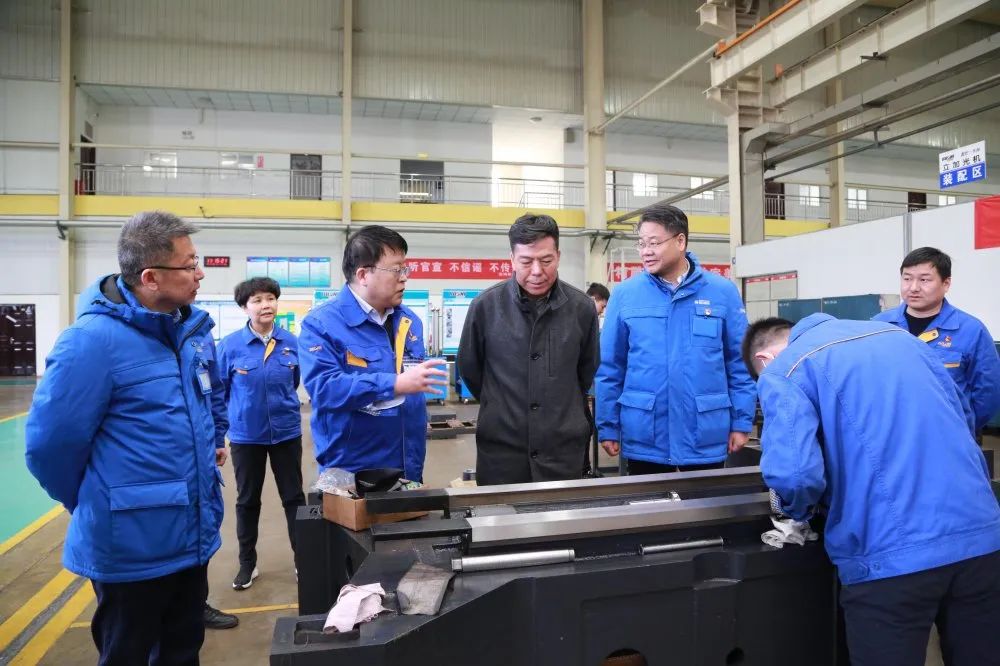 在寶雞機床的整機裝配、數(shù)字化車間,嚴董事長詳細了解企業(yè)一季度生產任務安排及完成情況,對企業(yè)新產品研發(fā)、智能產線等重點項目進行現(xiàn)場指導。
